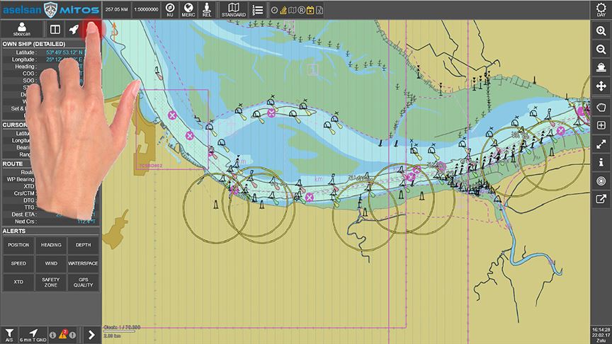 Seyir radarı, D/GPS, manyetik pusula, iskandil, parakete, ANS, cayro pusula, (W) AIS, meteorolojik sistemler gibi seyir yardımcı ekipmanlarıyla entegre edilen yüksek güvenirlikli, genişlemeye açık WECDIS, ihtiyaçlara göre ölçeklendirilebiliyor.