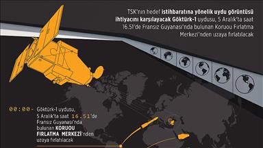 Savunma Sanayii Müsteşarlığından yapılan yazılı açıklamada, Müsteşarlık tarafından Türk Silahlı Kuvvetlerinin hedef istihbaratına yönelik uydu görüntüsü ihtiyacını karşılamak amacıyla tedarik edilen, Türkiye'nin en yüksek çözünürlüklü gözetleme uydusu Göktürk-1'in 5 Aralık 2016'da Güney Amerika'daki Fransız Guyanası'nda bulunan Kourou Fırlatma Üssünden hedef yörüngesine başarıyla fırlatıldığı anımsatıldı.