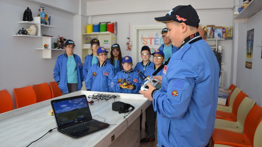 Çanakkale'nin Biga ilçesinde, iki yıldır robotik kodlama eğitimi alan ortaokul öğrencileri drone tasarladı.