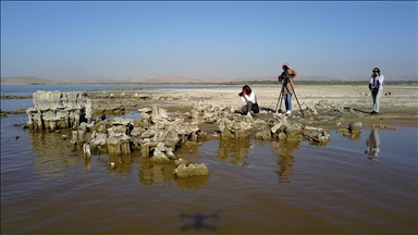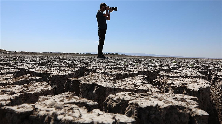 Göl tabanındaki çamurda besin bulmaya çalışan göçmen kuşlar, bölgedeki ölçüm kulesi ve düşen su seviyesinde balık avlamaya çalışan vatandaşlar Anadolu Ajansı (AA) ekibince havadan da görüntülendi.