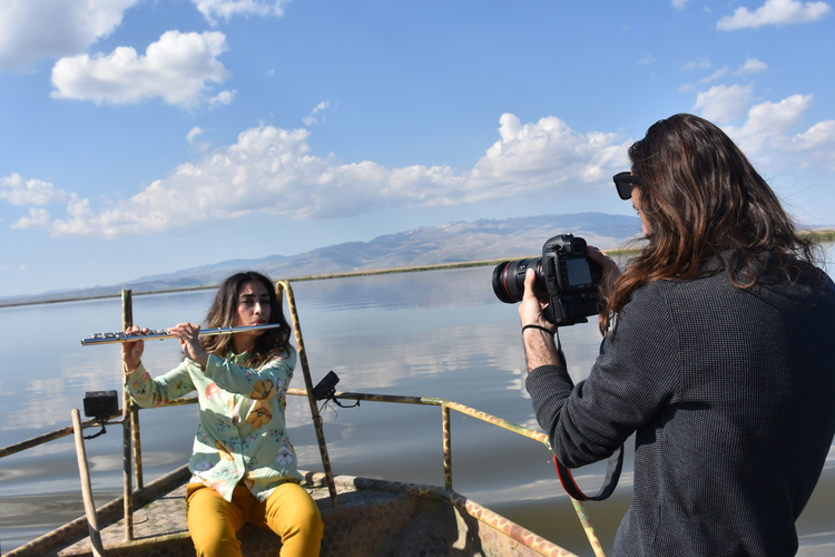 Çağlar da flütüyle doğanın güzelliklerine eşlik etmek için Eber Gölü'nde olduğunu kaydetti.