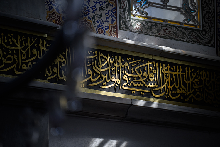 Ana mekanı üç yönden saran kuşak yazıda Fetih Suresi yer alıyor. Bu tercih, 3. Selim'in fetih ruhunu yeniden canlandırma iradesiyle ilişkilendiriliyor.