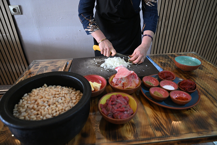 Nevşehir'de toprak güveçlerde pişirilen kuru fasulye, yöre sakinlerinin yanı sıra yerli ve yabancı turistler tarafından beğeniyle tüketiliyor.