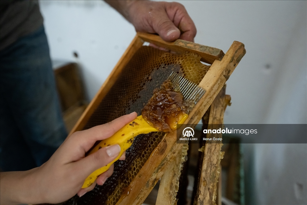 Antioksidan kaynağı, sofraların vazgeçilmezi balı tüketiciye en kaliteli şekilde ulaştırmak için çabalayan arıcılar, zorlu mesai yürütüyor.