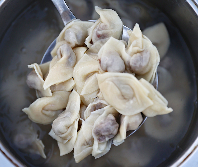 6. Sudan çıkarılan mantı, isteğe bağlı olarak üzerine konulan ceviz, yoğurt, pul biber ve tereyağı ile servis edilir.