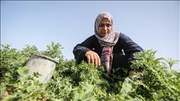 Filistinli kadınlar, Gazze sınırında kendilerine ait tarlalarda her an İsrail askerlerinin kurşununa hedef olma endişesiyle çocuklarının rızkını kazanmaya çalışıyor.08 Mart 2018