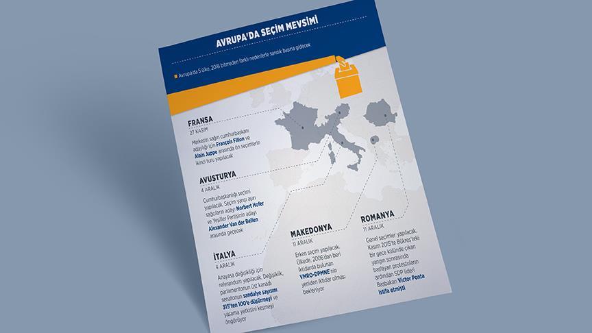Avrupa'da 2016 bitmeden Romanya, Avusturya ve Makedonya genel seçim, İtalya anayasa reformu, Fransa ise merkezin sağın cumhurbaşkanı adayını belirlemek için sandığa gidecek.