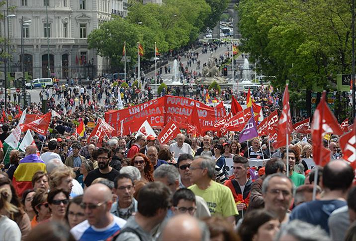 2008 yılından bu yana ekonomik krizle mücadele eden İspanya'da düzenlenen 1 Mayıs gösterilerinde ise hedef yine hükümetin uyguladığı kemer sıkma politikaları oldu.
