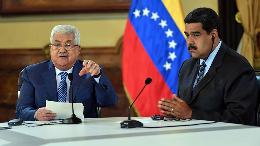 Filistin haber ajansı WAFA'ya göre, resmi temaslarda bulunmak üzere Venezuela'ya giden Filistin Devlet Başkanı Mahmud Abbas, burada mevkidaşı Nicolas Maduro ile bir araya geldi. Abbas, görüşmede Maduro'ya, Filistin meselesindeki son gelişmeler ile geçen şubat ayında Birleşmiş Milletler güvenlik Konseyi'nde (BMGK) açıkladığı barış vizyonuyla ilgili bilgi verdi.
