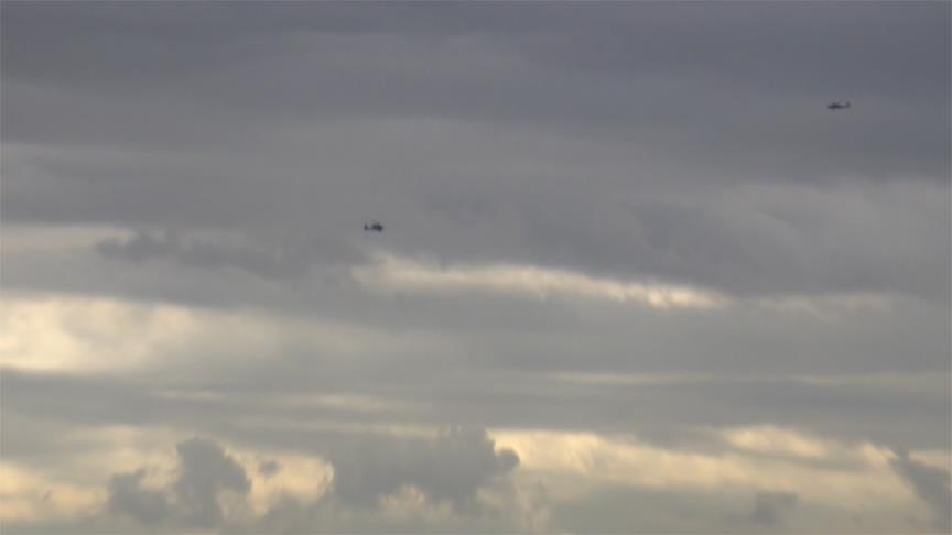 TRT Kurdi, Cerablus ilçesinde gündüz saatlerinde çekim yaptığı sırada Münbiç'te cephe hattına yakın hava sahasında uçuş yapan ABD helikopterlerinin görüntülerini kaydetti.