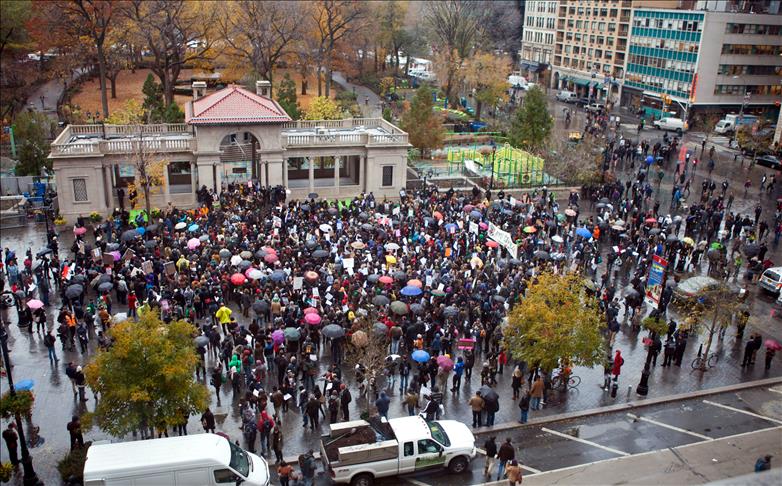Geçen yıl 17 Eylül'de New York'ta, finans merkezinin kalbi sayılan Wall Street'e yakın Zuccutti Parkında eylemlerini başlatan ve kısa sürede tüm ABD'ye yayılan ''Wall Street'i İşgal Et'' protestocuları, New York Belediye Başkanı Michael Bloomberg'in talimatıyla polis tarafından 15 Kasım'da parktan çıkartılmalarının ardından eski güçlerini kaybetseler de kentte kış kendini iyice hissettirene kadar eylemlerini çeşitli yerlerde sürdürmüşlerdi.