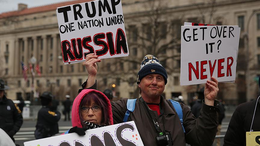 ABD Kongre Binası önünde yapılan tören öncesinde New York'ta toplanan göstericiler de pankartlar açarak Donald Trump karşıtı protesto gösterisi düzenledi.