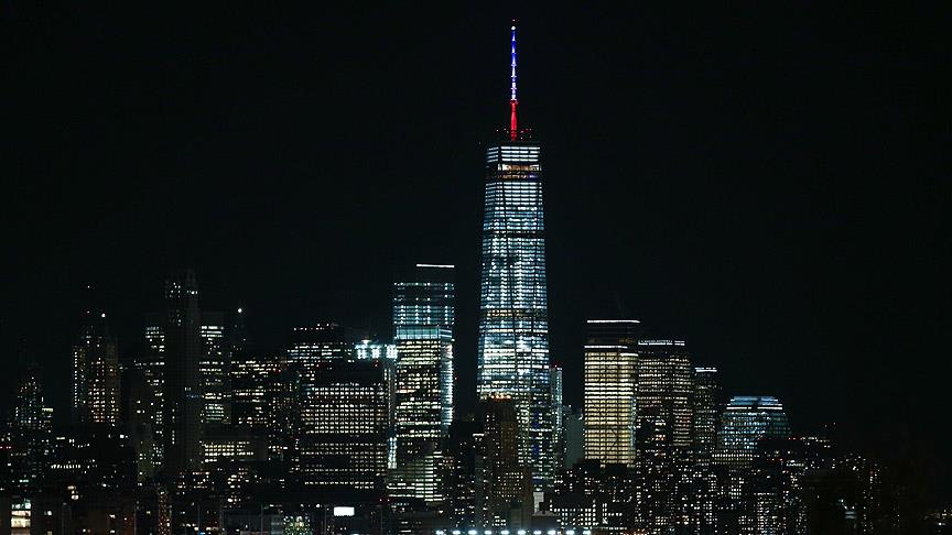 New York'ta Dünya Ticaret Merkezi de saldırı nedeniyle Fransız bayrağının renkleri ile aydınlatıldı.