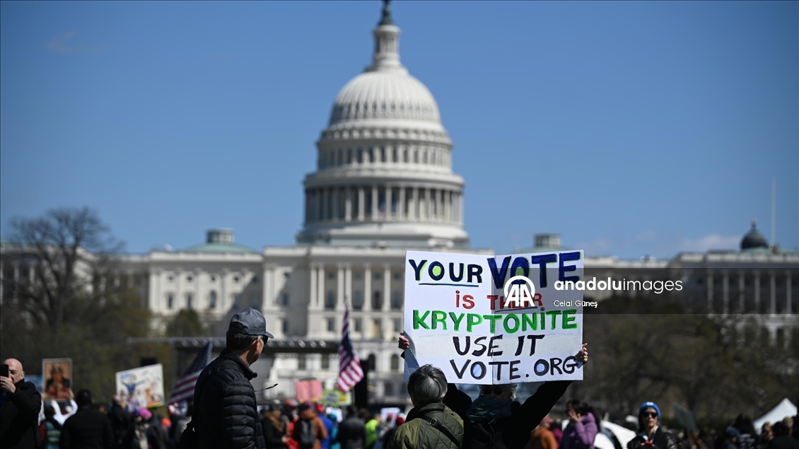 Başkent Washington D.C'de sabah saatlerinde toplanan göstericiler, "DC'ye Yürüyüş" adı altında Memorial Köprüsü'nden Washington Anıtı'na kadar yürüdü. Binlerce gösterici, pankartlar ve attıkları sloganlarla, Trump yönetiminin özellikle 28 Şubat'tan bu yana İsrail ile birlikte İran'a yönelik saldırılarını eleştirdi.