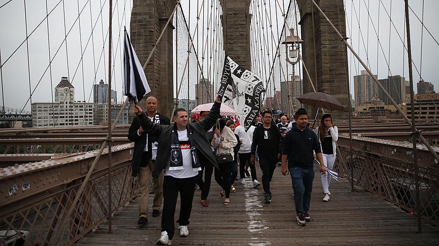 Spor Toto Süper Lig'de 2016-2017 sezonunun şampiyonu Beşiktaş'ın New York'taki taraftarları, Brooklyn Köprüsü'nde Beşiktaş bayrakları ve marşları eşliğinde şampiyonluk yürüyüşü gerçekleştirdi.
