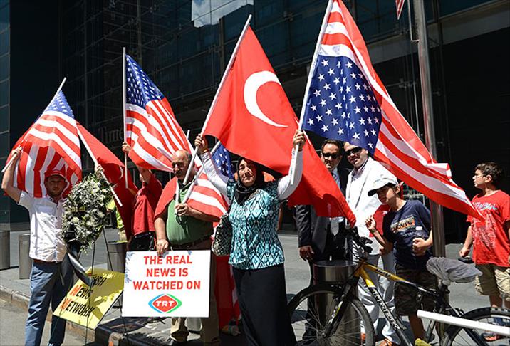 Protesto gösterisinde Amerikan ve Türk bayrakları açıldı.