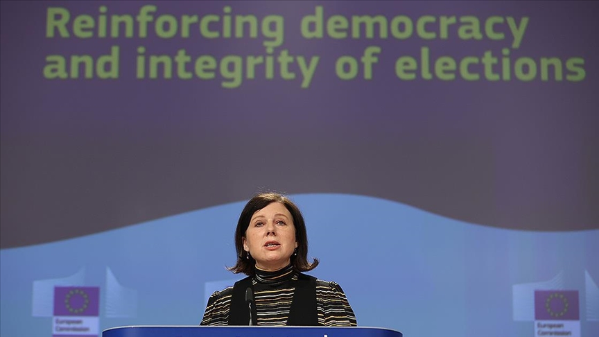 AB Komisyonu Başkan Yardımcısı Vera Jourova, demokrasiyi ve seçimlerin şeffaflığını güçlendirme konusunda basın toplantısı düzenledi.