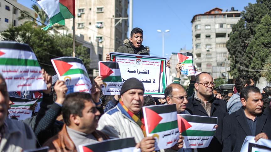ABD'nin Kudüs'ü "İsrail'in başkenti" olarak tanıması ve Filistin'e yönelik yardımlarını askıya alması yönündeki kararları, Gazze'de protesto edildi.