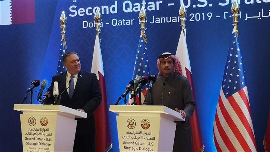 ABD Dışişleri Bakanı Mike Pompeo, Orta Doğu ülkeleri ziyareti kapsamında Katar'ın başkenti Doha'da mevkidaşı Şeyh Muhammed bin Abdurrahman Al Sani ile bir araya geldi. İkili, "2. ABD-Katar Stratejik Diyalog" toplantısının ardından ortak basın toplantısı düzenledi.