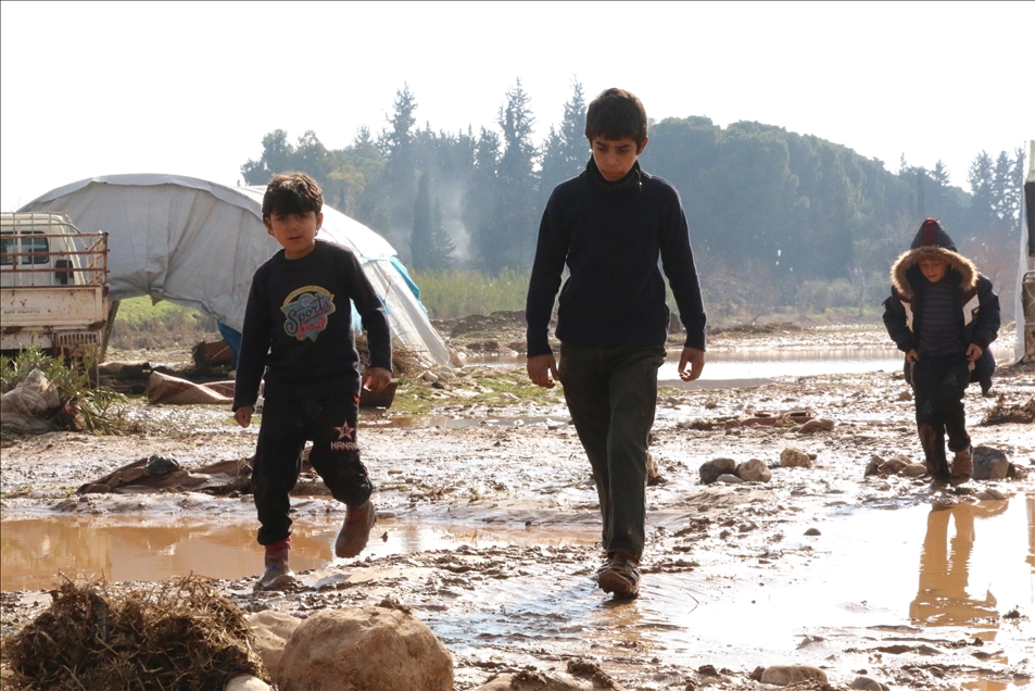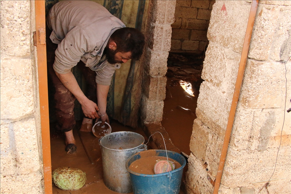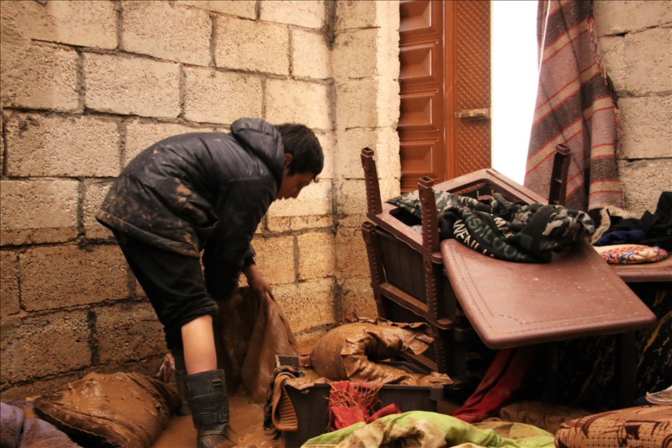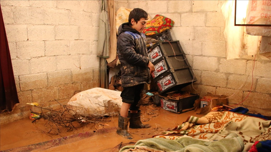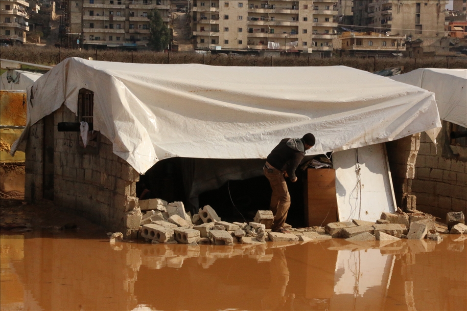 Suriye'de iç savaş nedeniyle yerinden edilen vatandaşlar, kış mevsiminin getirdiği zorlukların yanı sıra yoğun yağışlardan da etkilenmeye devam ediyor.