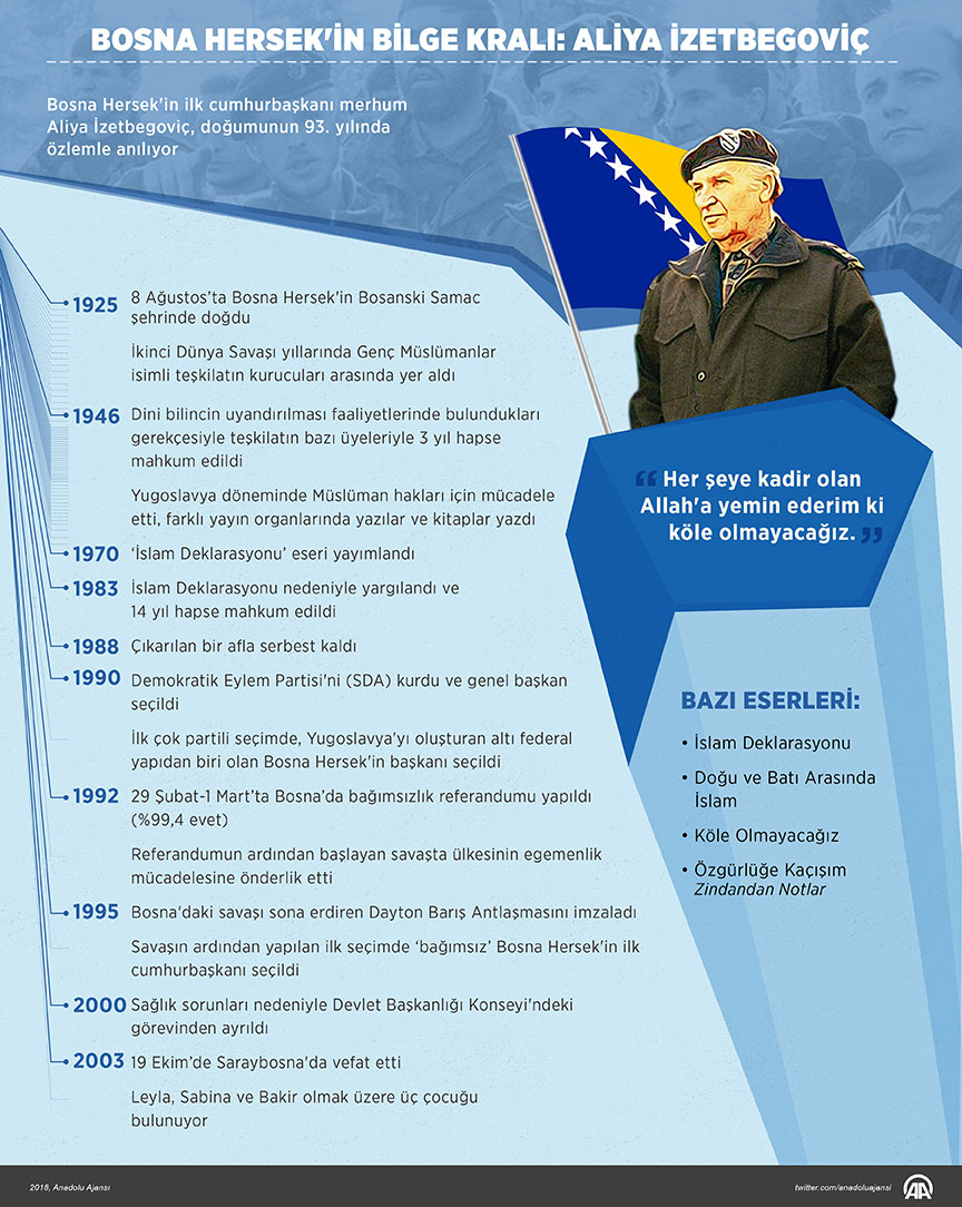 Bosna Hersek'te 8 Ağustos 1925'te dünyaya gelen ve babaannesi Üsküdarlı bir Türk olan Aliya İzetbegoviç, sahip olduğu bilgi birikimi nedeniyle "Bilge Kral" olarak anılıyor.