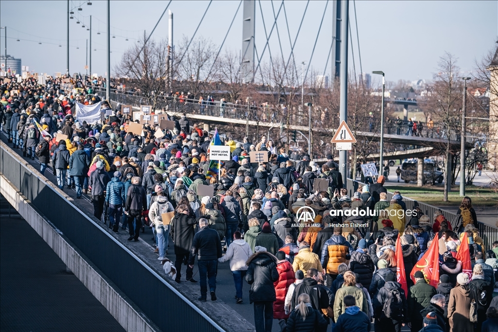 Düsseldorf'ta "AfD'ye karşı sessiz kalmayacağız" sloganıyla bir araya gelen yaklaşık 100 bin kişi ülkedeki ırkçılık, yabancı düşmanlığı ve aşırı sağcılığa tepki gösterdi.