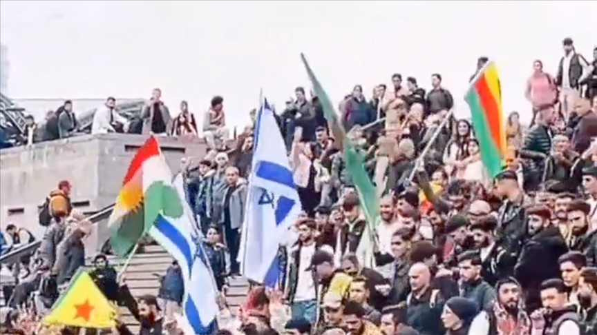 Köln tren istasyonunun önünde dün toplanan terör örgütü yandaşlarının sosyal medyada paylaştığı görüntülerde, örgütün paçavralarını ellerinde sallayan kitlenin içinde, bazı kimselerin İsrail bayrakları taşıdığı fark ediliyor.