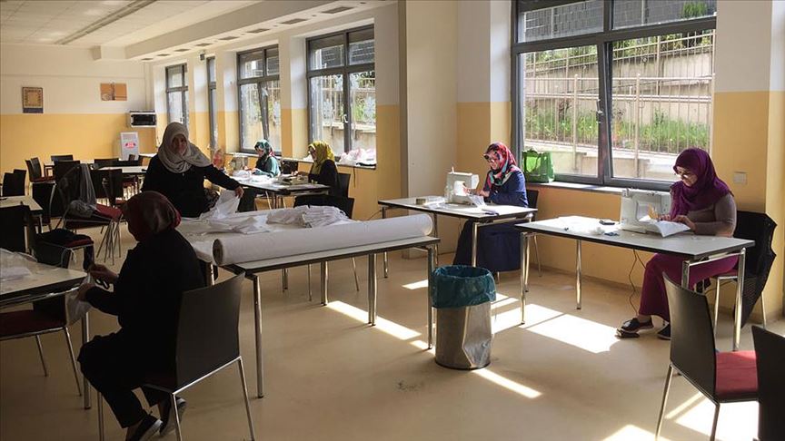 Almanya'nın Duisburg kentinde Diyanet İşleri Türk İslam Birliği (DİTİB) Merkez Camisi'nde atölye oluşturularak, yeni tip koronavirüs (Kovid-19) salgınında ihtiyaç sahiplerine dağıtılmak üzere maske üretimine başlandı.