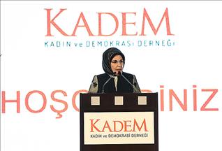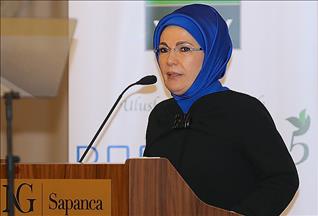 Emine Erdoğan, “Osmanlı’nın Amerikası” belgeselinin Amerika’daki Türk tarihini aydınlattığı gibi, tarih bilimine de büyük bir katkı sunduğunu belirterek hazırlanmasında emeği geçen akademisyenlere ve Yurtdışı Türkler ve Akraba Topluluklar Başkanlığına şükranlarını sunarak konuşmasına başladı.