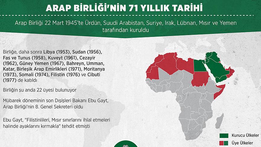 Arap ülkeleri arasında ekonomik, kültürel, siyasi ve sosyal ilişkileri düzenlemek amacıyla 1945'te kurulan Arap Birliği yıllar içinde yeterince etkin olmamakla eleştiriliyor. Gözlemciler, 22 ülkenin üye olduğu Birliğin çok sayıdaki kararının kağıt üstünde kaldığını belirtiyor.
