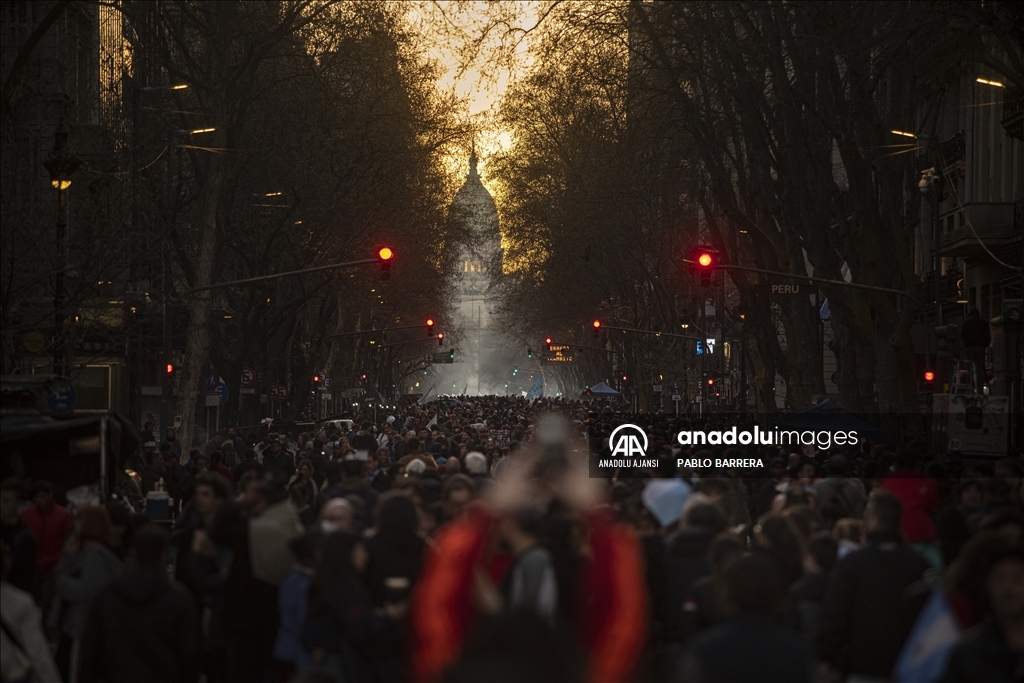 Arjantin Cumhurbaşkanı Alberto Fernandez'in cuma gününü resmi tatil ilan etmesinin ardından Mayıs Meydanı ile meydana çıkan 3 caddeyi dolduran göstericiler, Kirchner'ın maruz kaldığı silahlı saldırı girişimini kınadı ve ulusal birlik çağrısında bulundu.