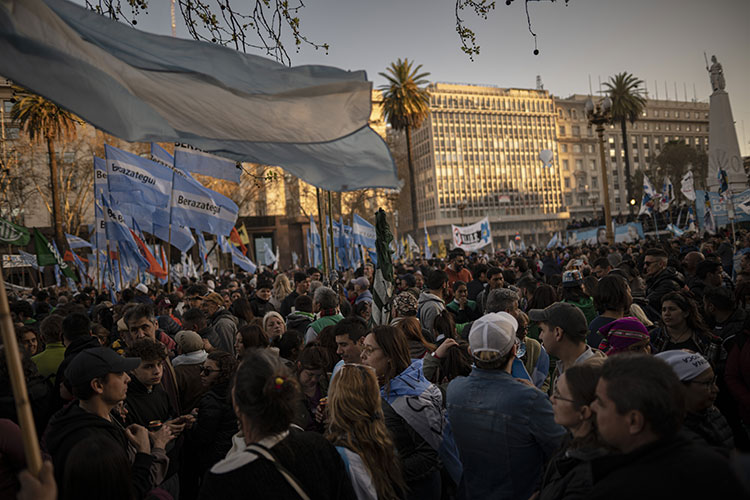 Hükümetin öncülüğünde başkent Buenos Aires'teki hükümet binası Casa Rosada'nın önündeki sembolik Mayıs Meydanı'nda düzenlenen gösteriye kabinenin yanı sıra siyasi, sosyal ve sendikal örgütlerin temsilcileri ile binlerce kişi katıldı.