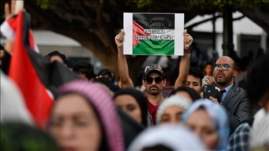 Filistin bayrakları taşıyan göstericiler, İsrail'in Filistinlilere yönelik soykırım, etnik temizlik, katliam ve saldırılarını kınayarak bunların durdurulması çağrısında bulundu.