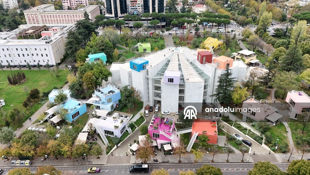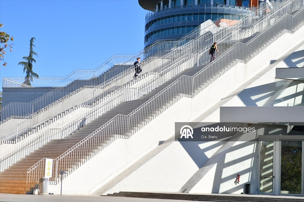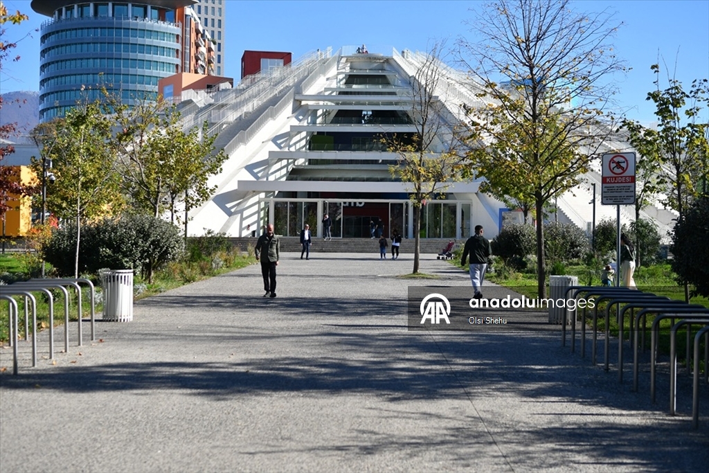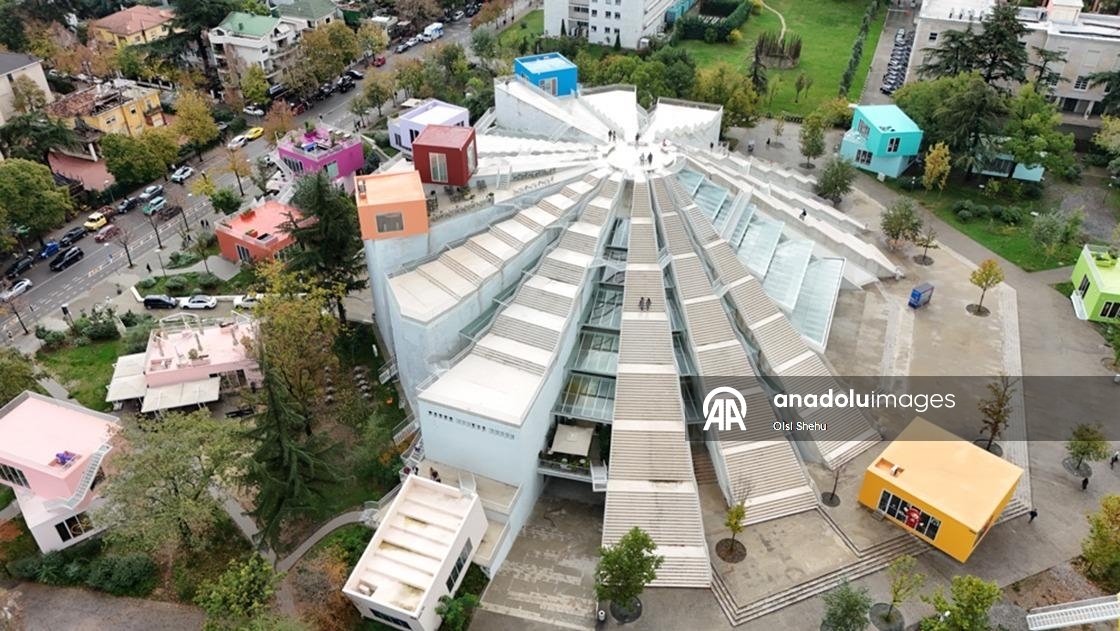 Arnavutluk'ta komünizmin simgesinden cazibe merkezine dönüşen yapı: Tiran Piramidi Fotoğraf: Olsi Shehu/AA