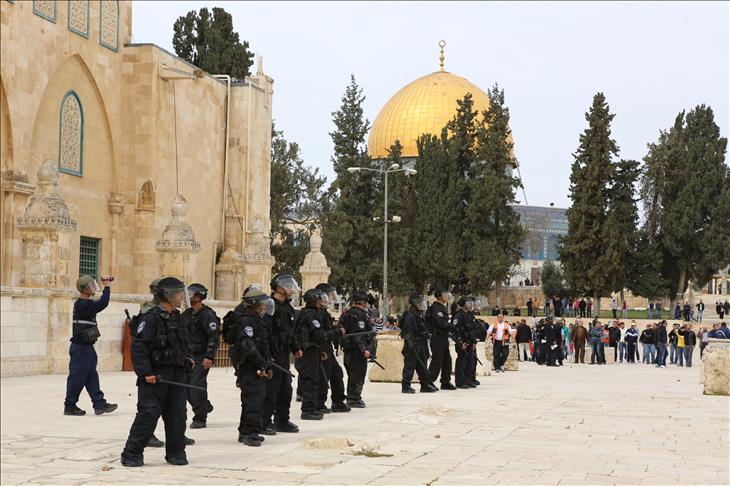 İsrail askerlerinin korumasında zorla Mescid-i Aksa'ya giren İsrailli yerleşimcilerle Filistinli gençler arasında çıkan arbedeye polisin müdahale ettiği bildirildi.