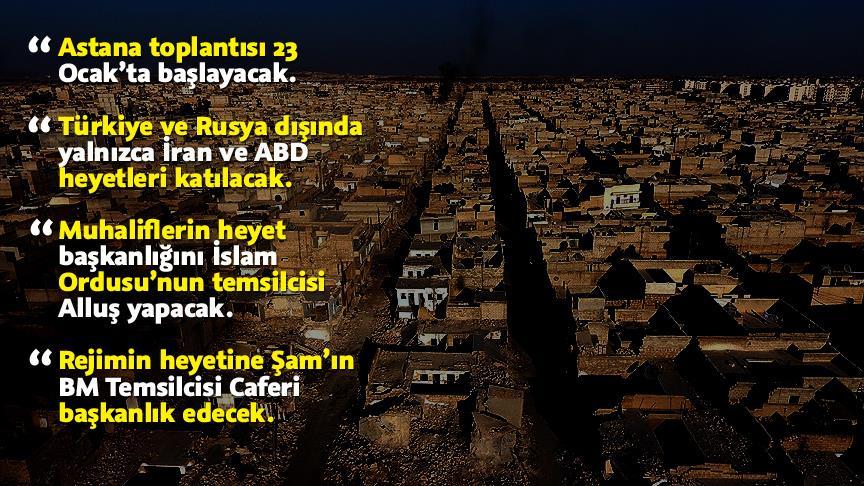 Suriye iç savaşının çatışan tarafları Kazakistan’ın başkenti Astana’da Türkiye ve Rusya’nın öncülüğünde ilk kez doğrudan görüşmeler için bir araya gelecek. Taraflar hazırlıklarını tamamladı.