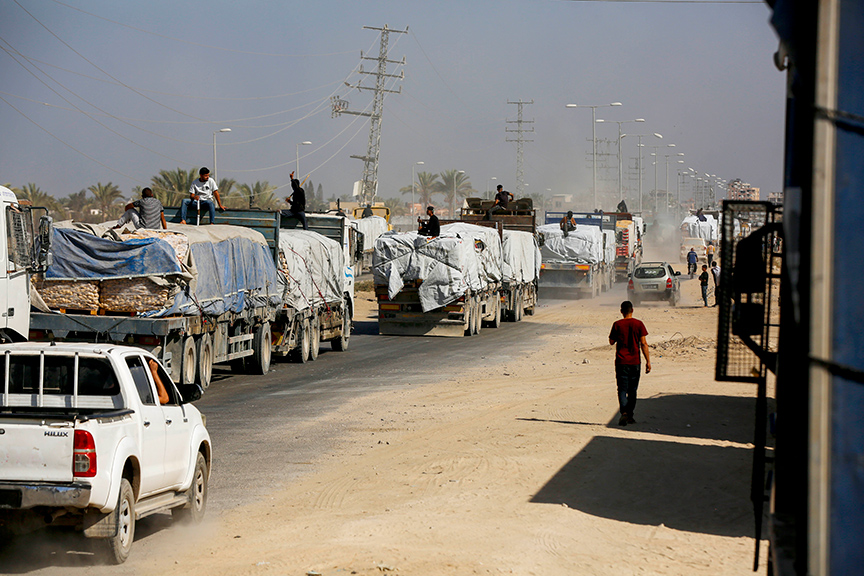 İsrail ile Hamas arasında varılan ateşkes anlaşmasına göre, İsrail'in Gazze'ye her gün insani yardım taşıyan 600 tırın girişine izin vermesi gerekiyor.