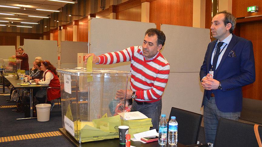 Türkiye'de 16 Nisan'da yapılacak anayasa değişikliği halk oylaması için Almanya'da sandıkların kurulduğu 13 bölgede oy kullanma işlemi devam ediyor.