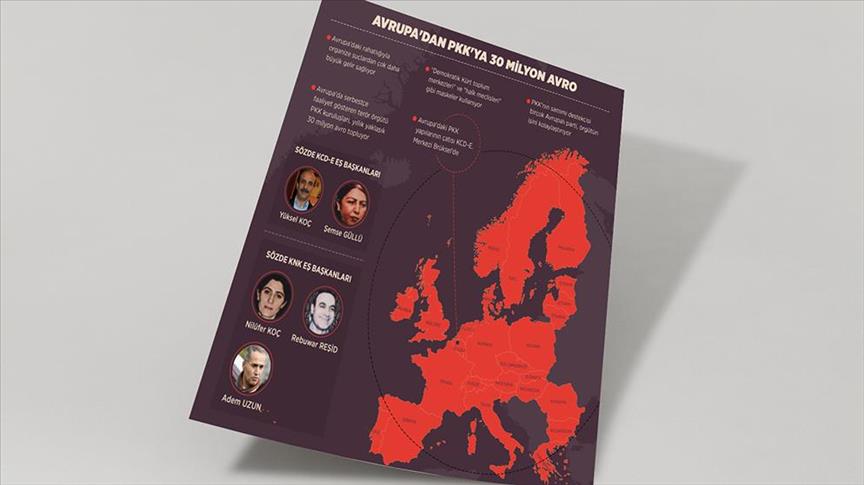 AA'nın Türk güvenlik kaynaklarından aldığı bilgilere göre, PKK, Avrupa'daki finans faaliyetlerini başta Almanya olmak üzere, Fransa, İsviçre, Avusturya, Hollanda, Belçika, İsveç, Norveç, Danimarka'da yürütüyor.