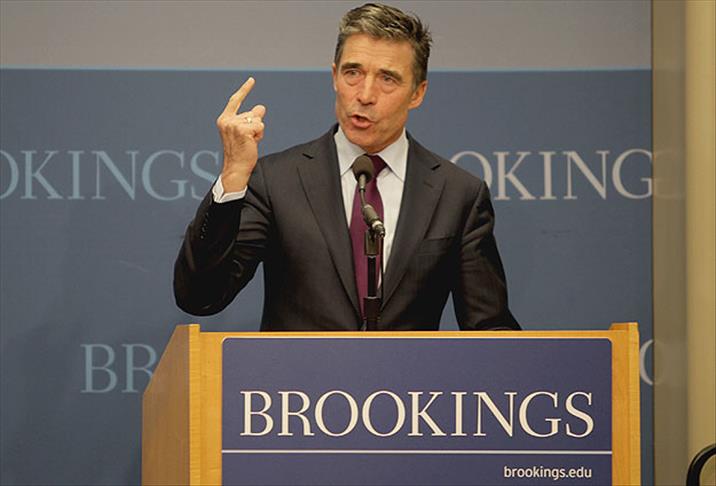 NATO Genel Sekreteri Rasmussen, temaslarda bulunduğu ABD'nin başkenti Washington’da düşünce kuruluşu Brookings Enstitüsü’nde konuştu. Rasmussen, bir ay öncesine göre şu anda farklı bir dünyada yaşadıklarını belirterek, “Rusya’nın Ukrayna’daki askeri saldırganlığı, uluslararası yükümlülüklerin apaçık ihlali ve Ukrayna’nın toprak bütünlüğü ve bağımsızlığına saldırıdır. Silah tehdidi altında sözde bir referandum ile Kırım’ın ilhakı, hukuka ve yasalara aykırıdır. Bu, Avrupa-Atlantik toplumu, NATO ve tüm, özgür ve barış içindeki bir Avrupa’ya taahhüdü bulunan diğerleri için bir uyarı işaretidir” diye konuştu.