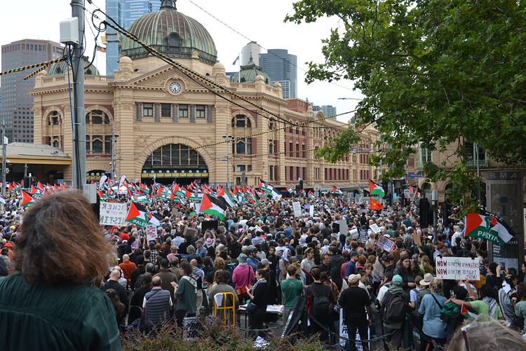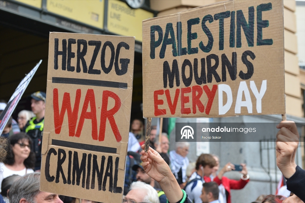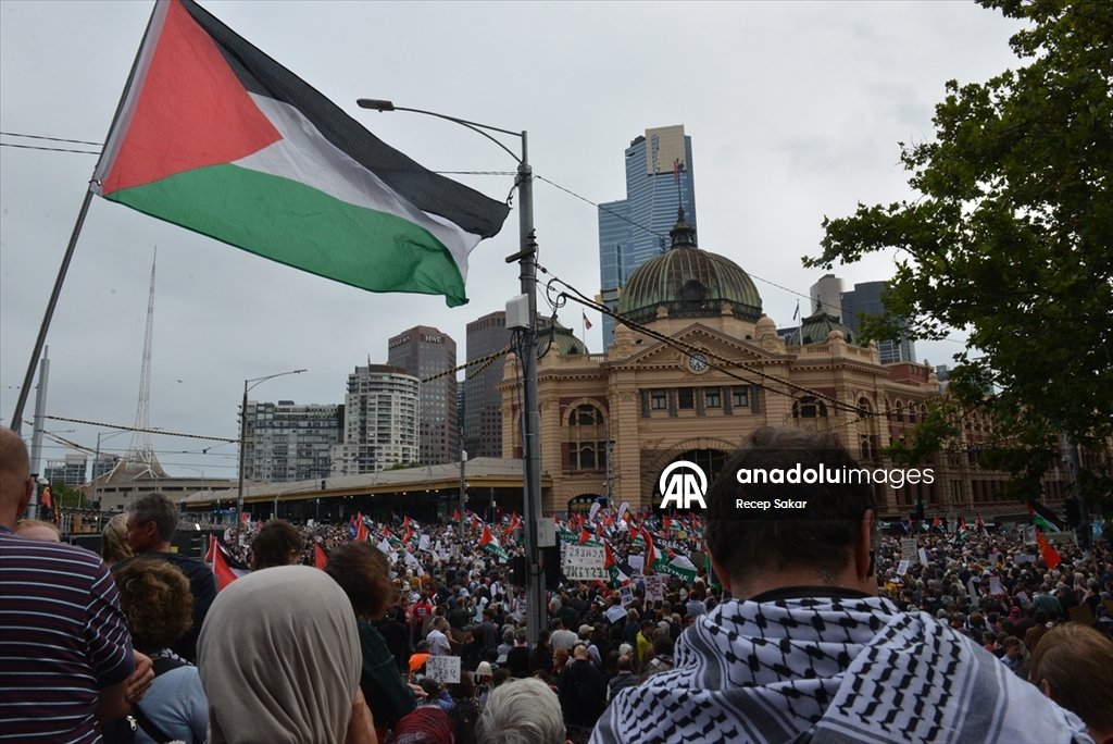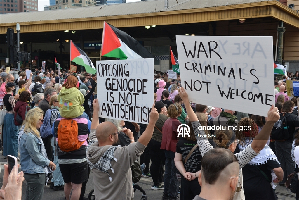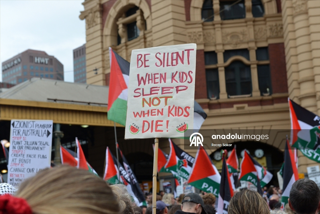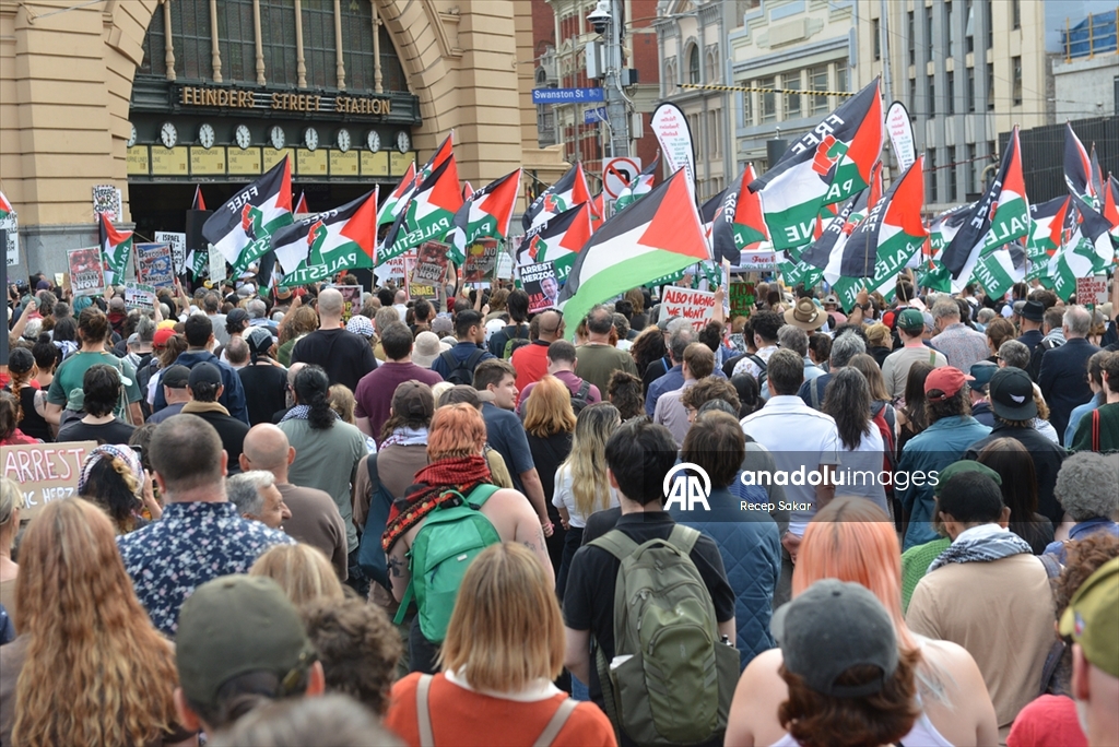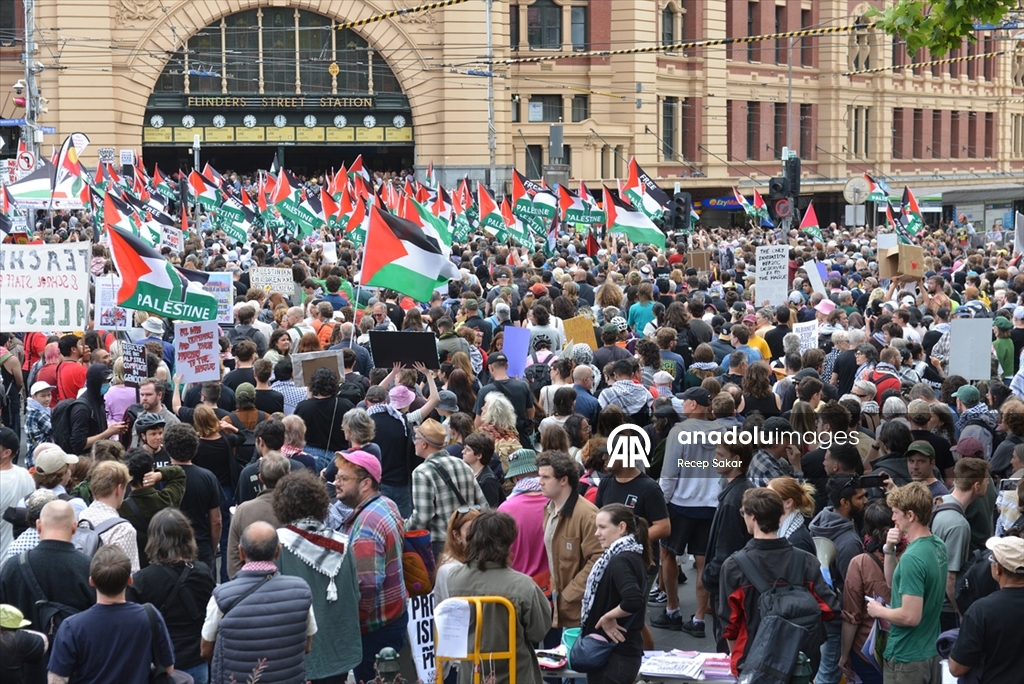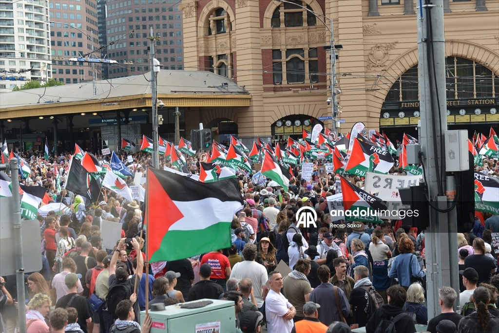 Melbourne kentinde de binlerce kişi sokaklara çıktı. Sokakları Filistin bayraklarıyla donatan göstericiler, “Asla soykırımı savunma” yazılı pankartlar taşıyarak tepkilerini dile getirdi.