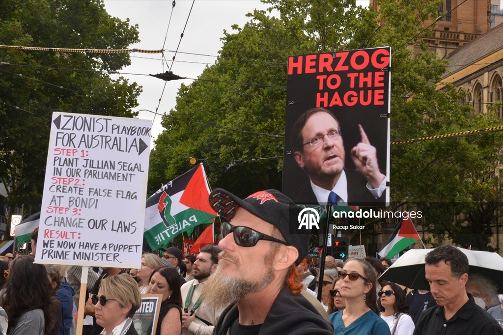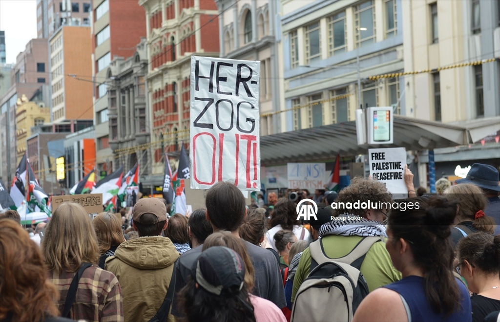 Sydney kenti de protestolara sahne oldu. Belediyenin önünde toplanan binlerce gösterici, bayraklar ve pankartlar taşıyarak Herzog’un ziyaretini protesto etti. Davulcuların eşlik ettiği kalabalık, sloganlar attı.