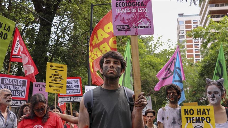 Arjantin'in başkenti Buenos Aires'te, Avustralya'nın Buenos Aires Büyükelçiliği önünde, Avustralya'da 27 kişinin hayatını kaybettiği ve yaklaşık bir milyara yakın hayvanın öldüğü yangınlar protesto edildi. ( Muhammed Emin Canik - Anadolu Ajansı )