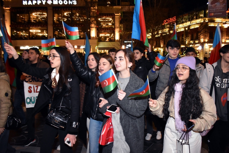 Resmi olmayan sonuçlara göre, İlham Aliyev'in seçimi kazanmasının açıklanması üzerine Bakülüler şehrin merkezi bölgelerine akın etti.
