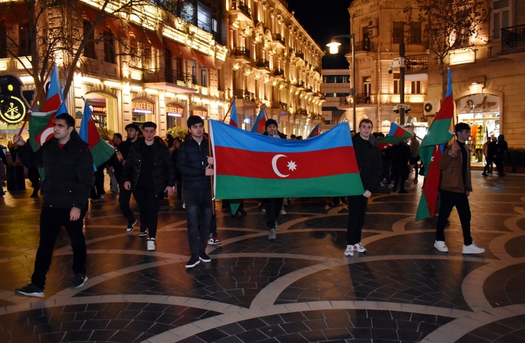 Azerbaycan'da Cumhurbaşkanı İlham Aliyev'in seçimde elde ettiği zafer kutlanıyor.
