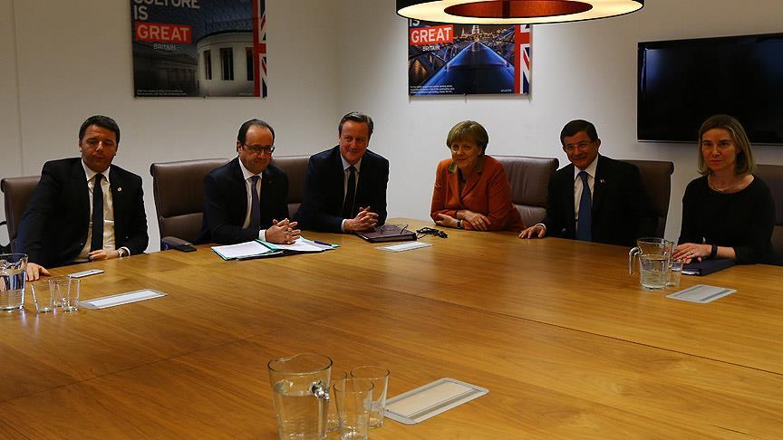 Davutoğlu, AB Konseyinde gerçekleştirilen mini zirvede, İngiltere Başbakanı David Cameron, Almanya Başbakanı Angela Merkel, Fransa Cumhurbaşkanı François Hollande, İtalya Başbakanı Matteo Renzi, Yunanistan Başbakanı Aleksis Çipras'ın yanı sıra AB Dış İlişkiler ve Güvenlik Politikasından Sorumlu Yüksek Temsilcisi Federica Mogherini ile görüştü.