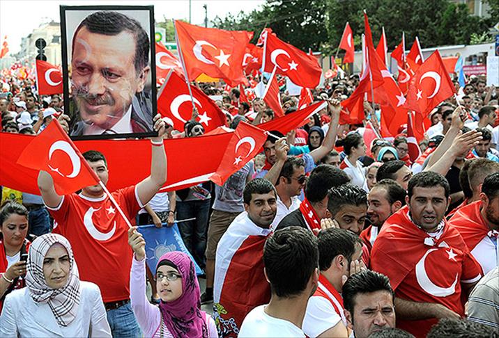 Avusturya'nın başkenti Viyana'da toplanan 10 binden fazla kişi, Başbakan Recep Tayyip Erdoğan'a destek vermek amacıyla miting düzenledi.