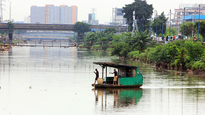 Orta Cakarta'da yer alan Tanah Abang bölgesinde kent sakinleri ve özellikle öğrenciler, Muara Nehri üzerinde ulaşım için el yapımı salları tercih ediyor.