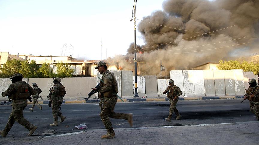 Basra'da dün akşam sokağa çıkan bir grup gösterici güvenlik güçlerinin oluşturduğu bariyeri aşarak belediye binasını ateşe vermişti.