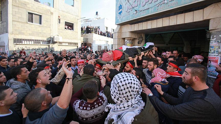 İsrail askerlerinin, işgal altındaki Batı Şeria'nın Kalkilya kentinde ABD’nin Kudüs kararını protesto eden göstericilere yaptığı müdahale sırasında şehit olan Filistinli genç Ahmed Selim (24) son yolculuğuna uğurlandı.